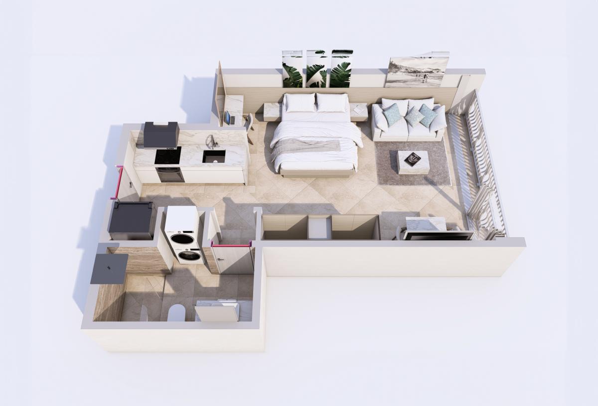 This beautifully appointed third-floor studio residence offers: